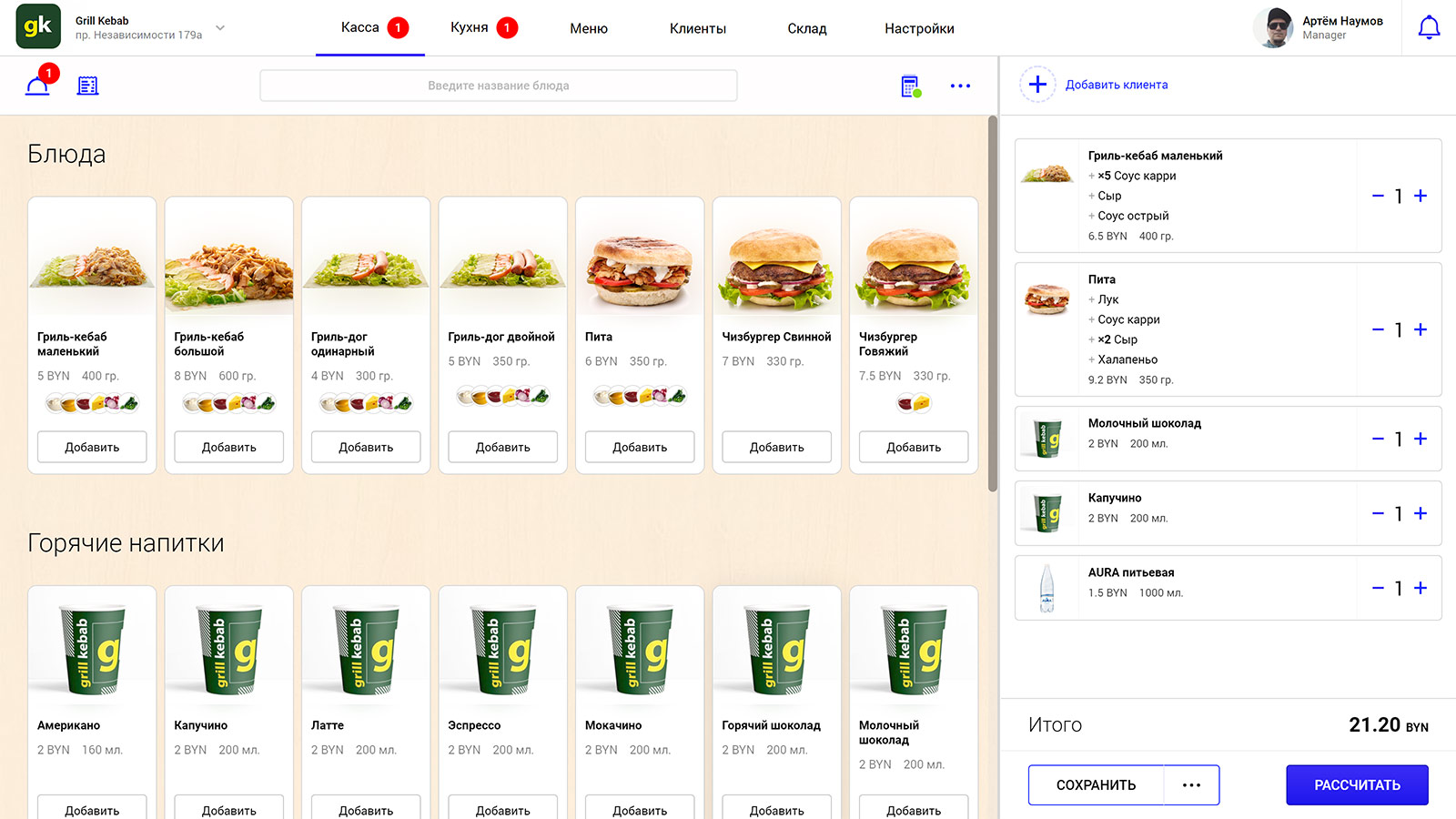 Простая в использовании POS-система. Интегрирована со складом и онлайн-заказами. Зона выдачи с электронной и онлайн-очередью, синхронизация с кухней и онлайн-бронированием.
